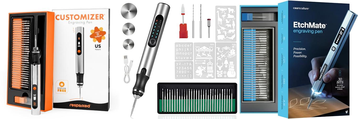 1. Resparked Customizer Engraving Pen (Formerly Culiau): Ultimate Cordless Portable Tool for Artists & DIYers – Engrave 50+ Surfaces – Beginner Friendly – Rechargeable – Free 30 Bits & Mastery Guide