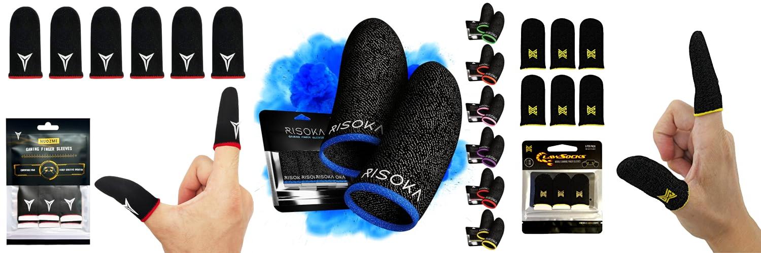2. RISOKA 10 Pieces Gaming Finger Sleeves – Perfect Touchscreen Glide – Thumb Sleeve for Mobile Games – Dedales Gamer Profesionales – Phone Accessories