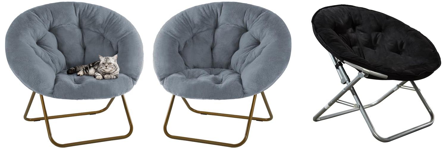 1. DUMOS Comfy Saucer Chairs Cozy Faux Fur Soft Lounge Cute Folding Bedroom Living Room Seat Flexible Reading Foldable Seating for Kids Adults Thick Padded Metal Frame Modern for Home Office Grey