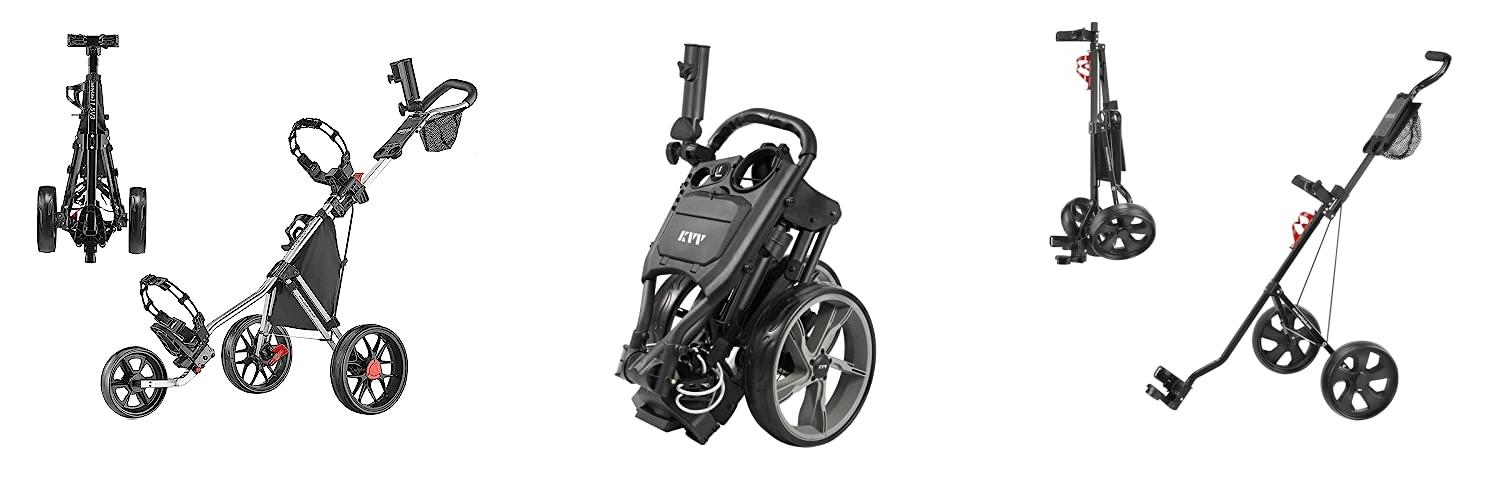 2. KVV 3 Wheel Foldable/Collapsible Golf Push Cart Ultra Lightweight Smallest Folding Size