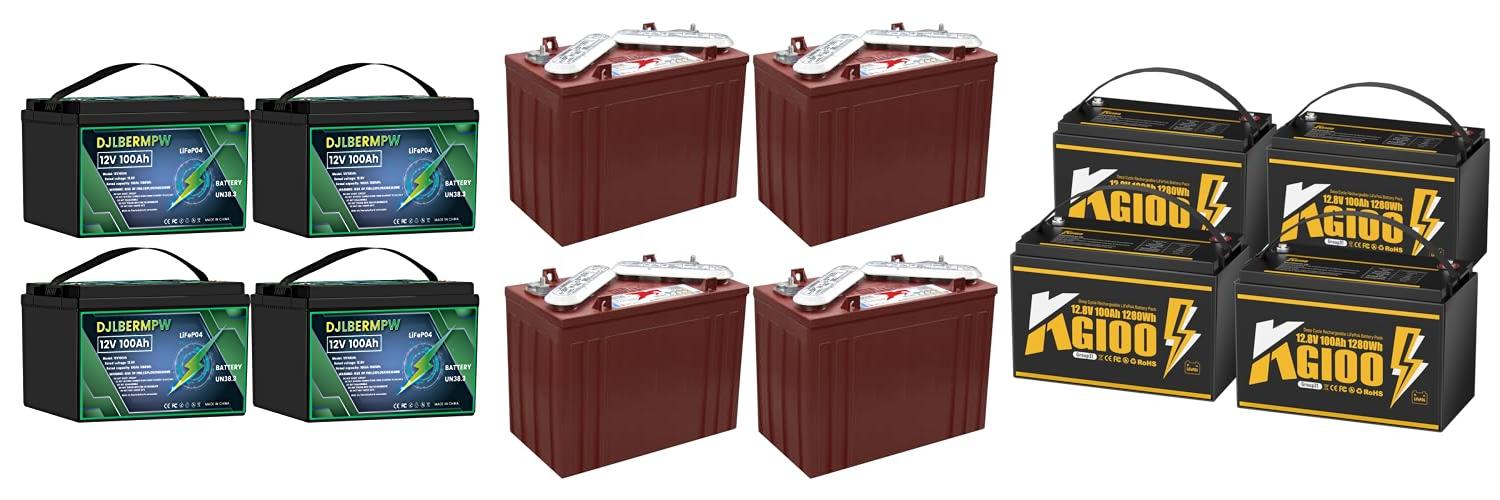 A: Most golf carts use a system of batteries wired together. Common setups are four 12V batteries or six 6V batteries (which, when wired in series, create a higher voltage system). Check your cart’s manual or existing battery setup to know for sure.