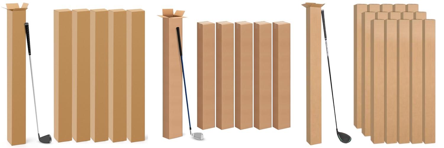 1. Qilery 5 Pcs 4 x 4 x 48 Inch Golf Club Shipping Boxes 4L x 4W x 48H Tall Corrugated Boxes Cardboard Long Golf Storage Box for Shipping