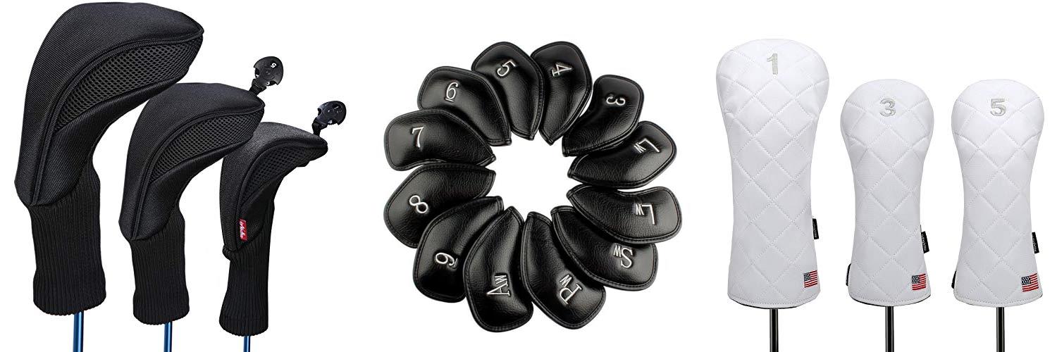 - Includes three headcovers for different clubs (driver, fairway woods, hybrids).