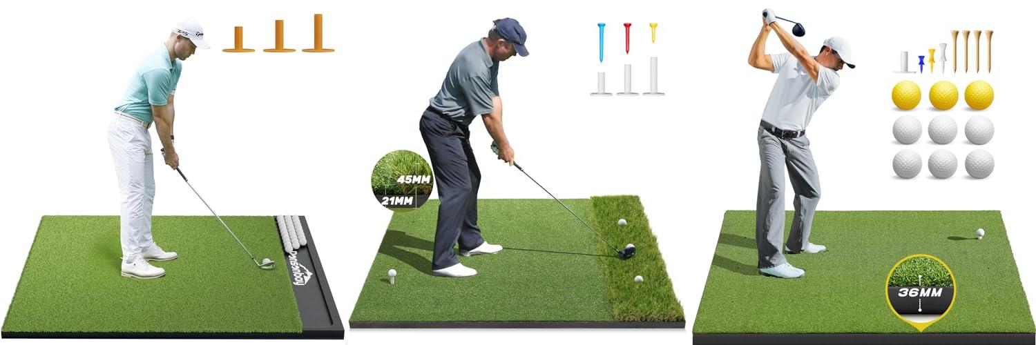 Want to improve your golf game without leaving your house? The GoSports 5 ft x 4 ft PRO Golf Practice Hitting Mat is your new best friend. This mat comes with everything you need to practice your swing at home. It’s designed to help you fix common golf mistakes like hooks, slices, and hitting the ball fat or thin. You can also work on making your swing path and impact position better. This mat is great for any golfer, no matter their skill level.