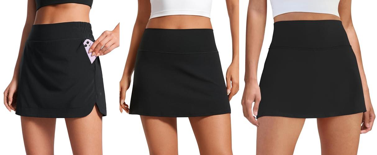 1. CRZ YOGA High Waisted Golf Skirts for Women A Line Tennis Athletic Casual Skort with Inner Shorts Pockets Black Medium