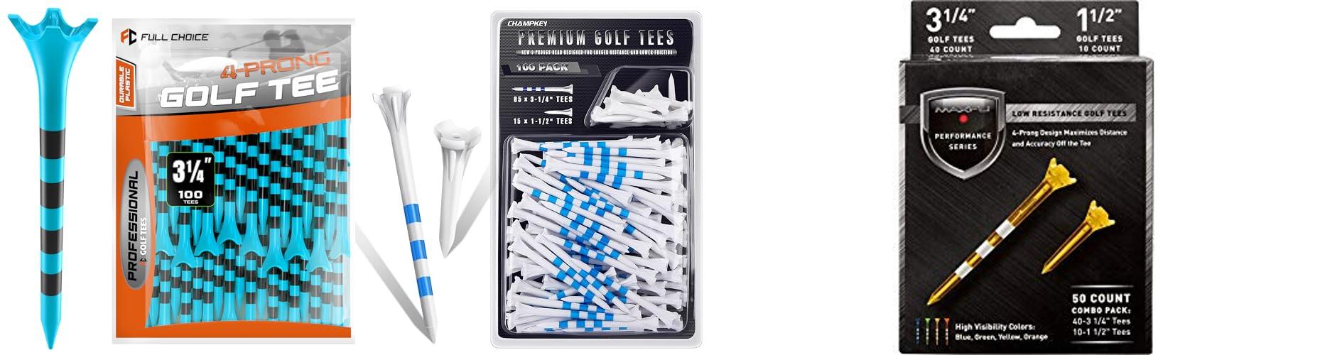 2. CHAHMPKEY Premium 3-Prong Plastic Golf Tees 3-1/4″ 100 Pack – 40% Reduced Ball Contact with High Stability and Long Distance Performance Golf Tees Plastic(White – 100 Assorted Pack)
