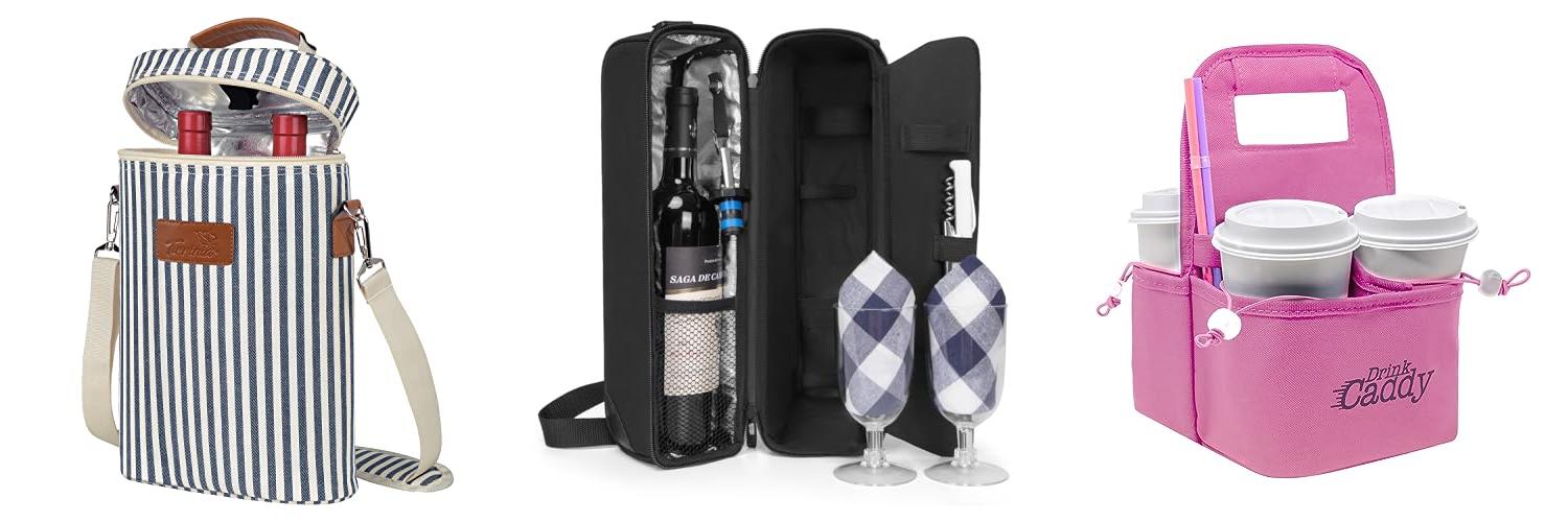 - This carrier works great for water bottles and other drinks too, not just wine.