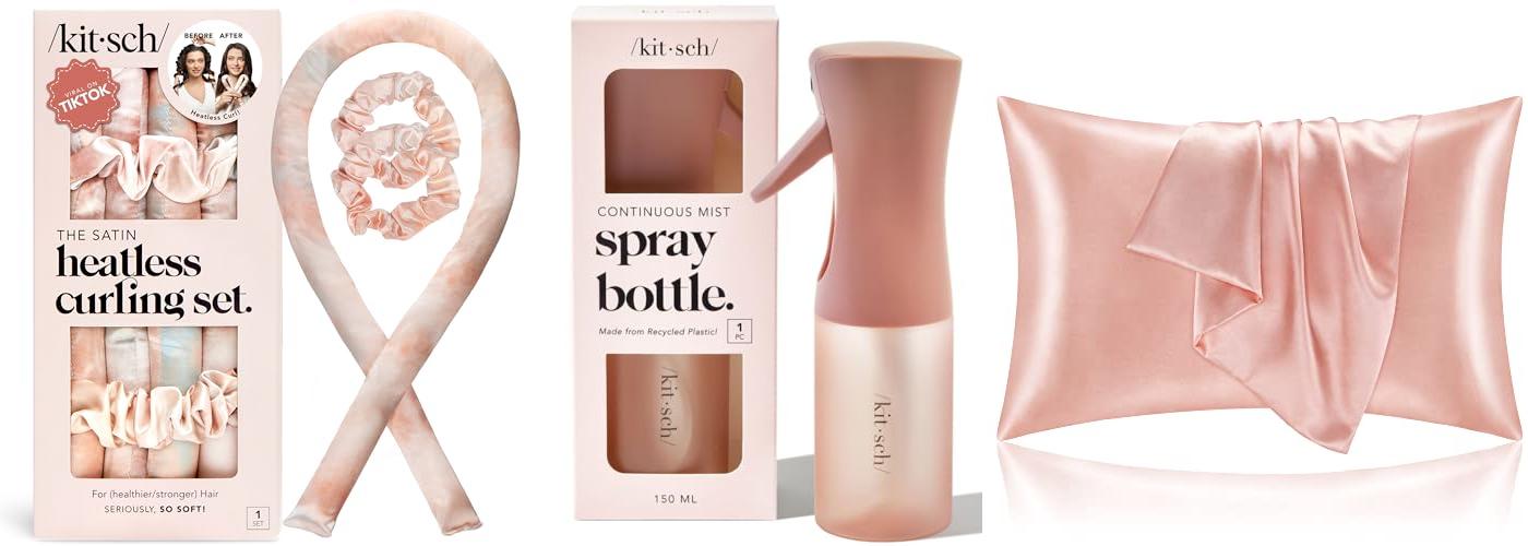 1. Kitsch Satin Heatless Curling Set – Heatless Curls Overnight with 34″ Hair Curler & 2 Satin Scrunchies – Comfortable Hair Curlers to Sleep In for Frizz-Free