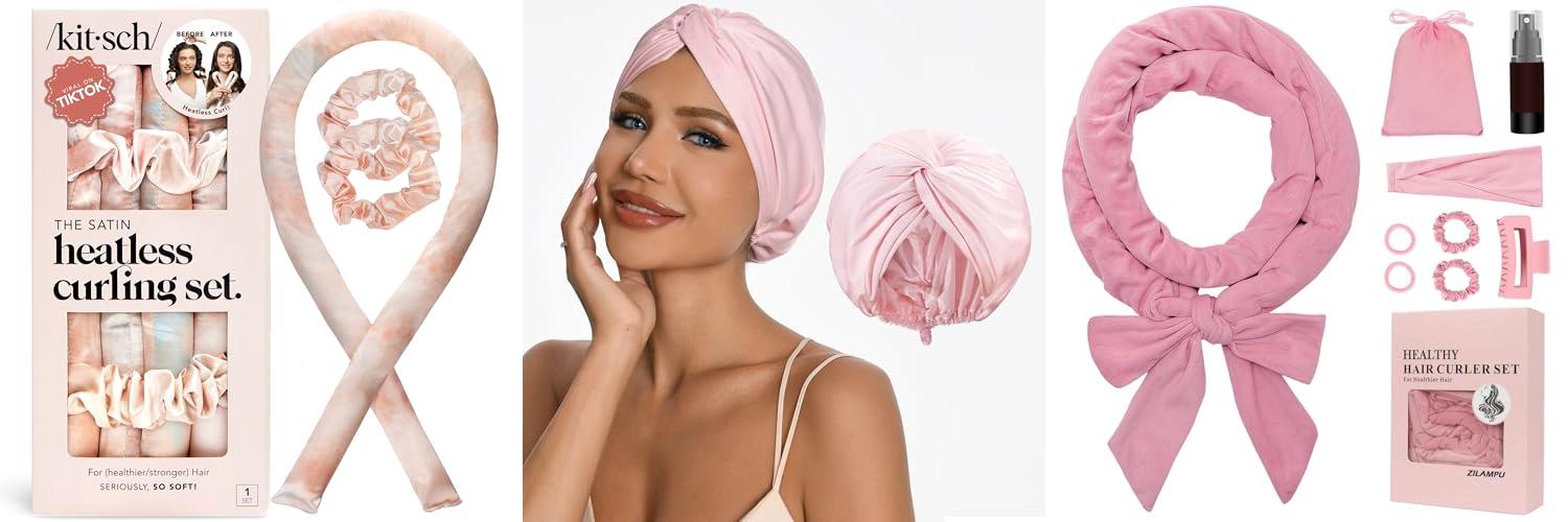 1. Kitsch Satin Heatless Curling Set – Heatless Curls Overnight with 34″ Hair Curler & 2 Satin Scrunchies – Comfortable Hair Curlers to Sleep In for Frizz-Free
