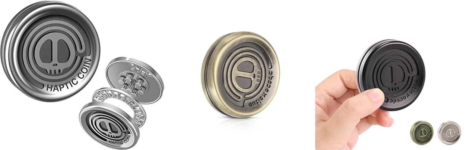 - You can easily carry this haptic coin in your pocket. Take it to school, the office, or on trips to fidget anywhere you go.