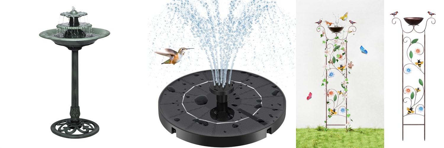 4. Bird Bath with Solar Powered Fountains for Hummingbirds