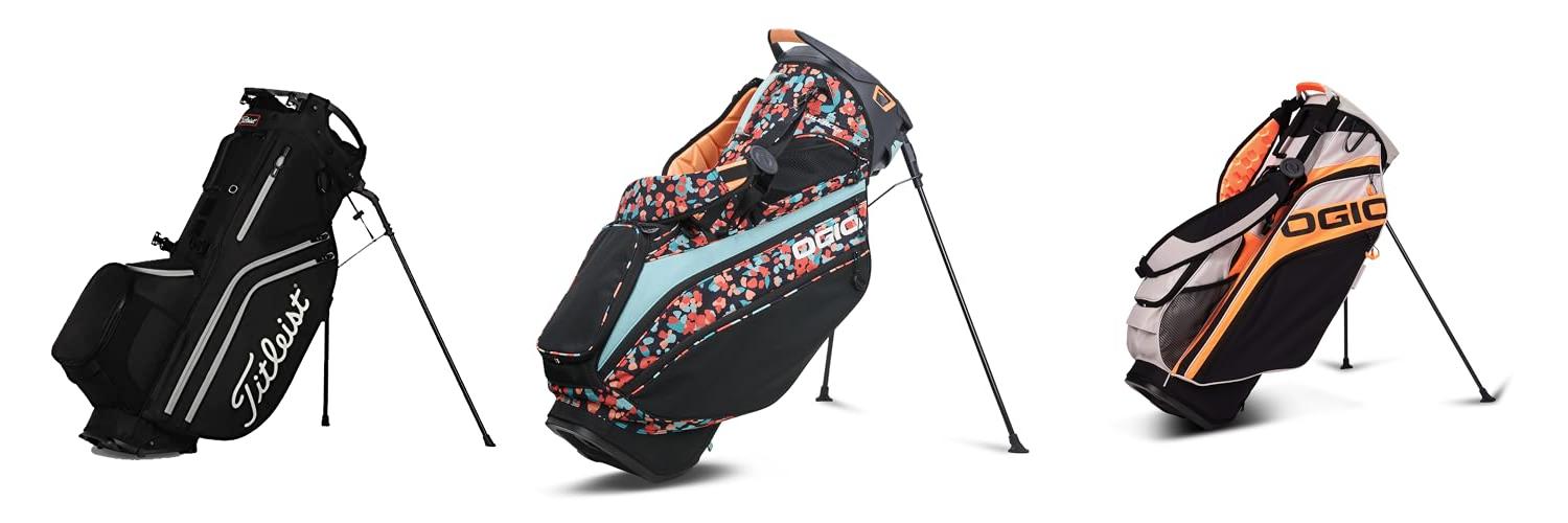 A: A stand bag has legs that pop out when you set it down, making it easy to carry. A hybrid bag has these legs too, but it’s also designed to sit well on a golf cart and often has a more streamlined shape for cart use.