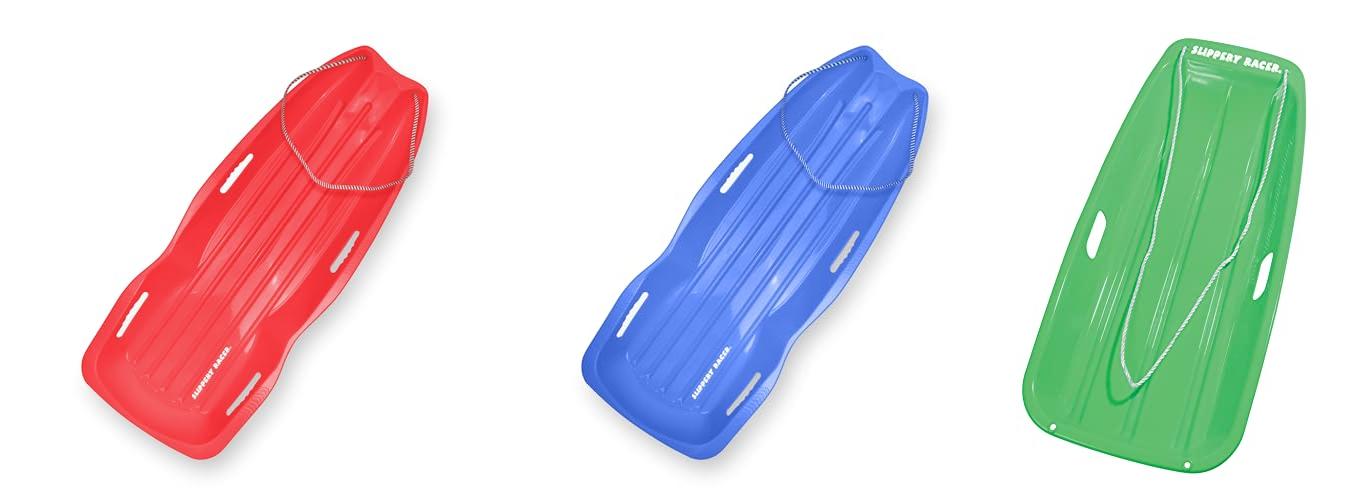1. Slippery Racer Downhill Xtreme Flexible Adults and Kids Plastic Toboggan Snow Sled for Up to 2 Riders with Pull Rope and Handles