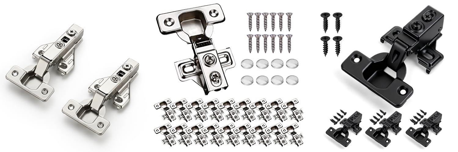 • Easy Installation: These hinges mount directly to the face frame of your cabinets, no need to cut out a space. They come with screws and even a screwdriver, making setup a breeze.