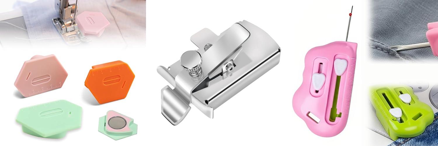 3. 3-in-1 Magnetic Seam Guide for Sewing Machines with Seam Rippers & Needle Threader – Multifunctional Hemmer with Scale – Universal Sewing Accessories (Pink Stitch Ripper & Threader Included)