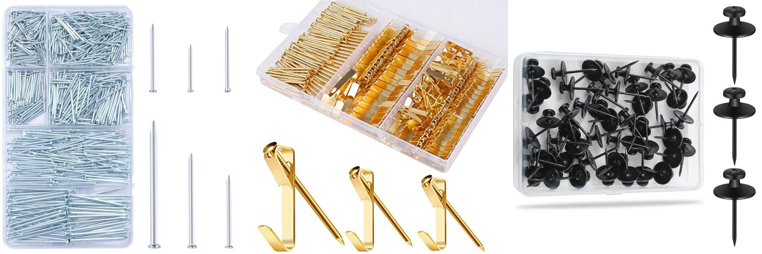 - Brass: Brass nails are pretty and don’t rust easily. They are a good choice for lighter pictures or when you want a decorative look.