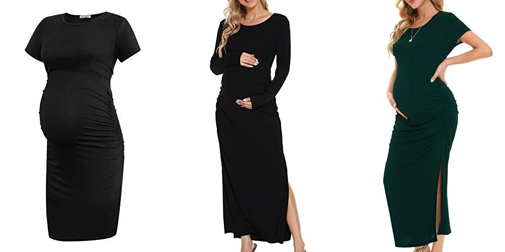 2. Smallshow Women’s Split Maternity Dress Long Sleeve Ruched Pregnancy Clothes Medium Black