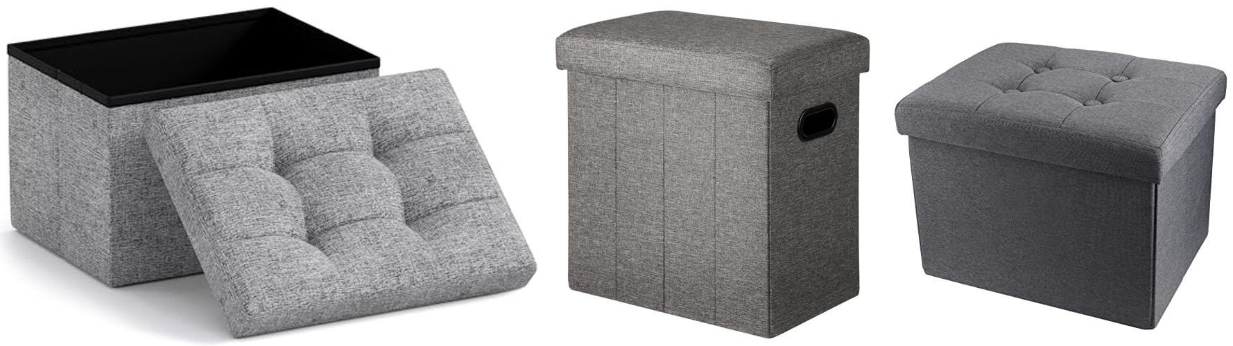 A: A storage ottoman has a hollow inside that you can open up to store things. It’s like a hidden box under a seat.