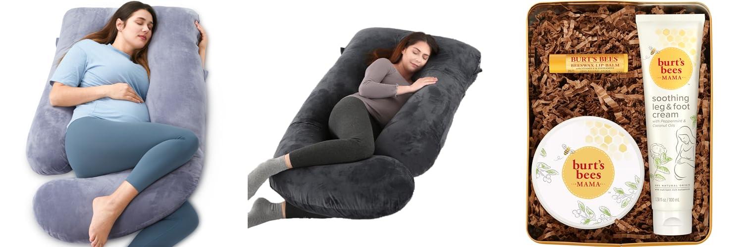 • For Mom’s Comfort: A pregnancy pillow can be a lifesaver for sleep. Cozy slippers or a soft robe make lounging at home more enjoyable. A belly butter or stretch mark oil helps with skin discomfort.