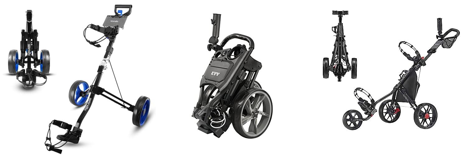 2. KVV 3 Wheel Foldable/Collapsible Golf Push Cart Ultra Lightweight Smallest Folding Size