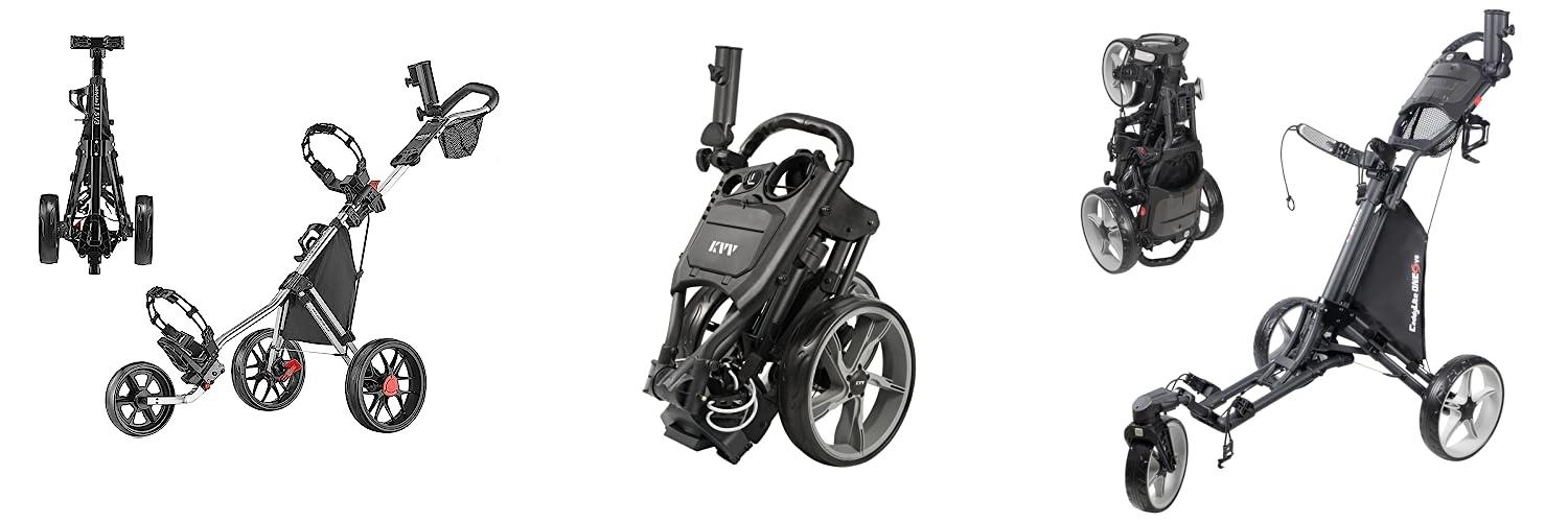2. KVV 3 Wheel Foldable/Collapsible Golf Push Cart Ultra Lightweight Smallest Folding Size