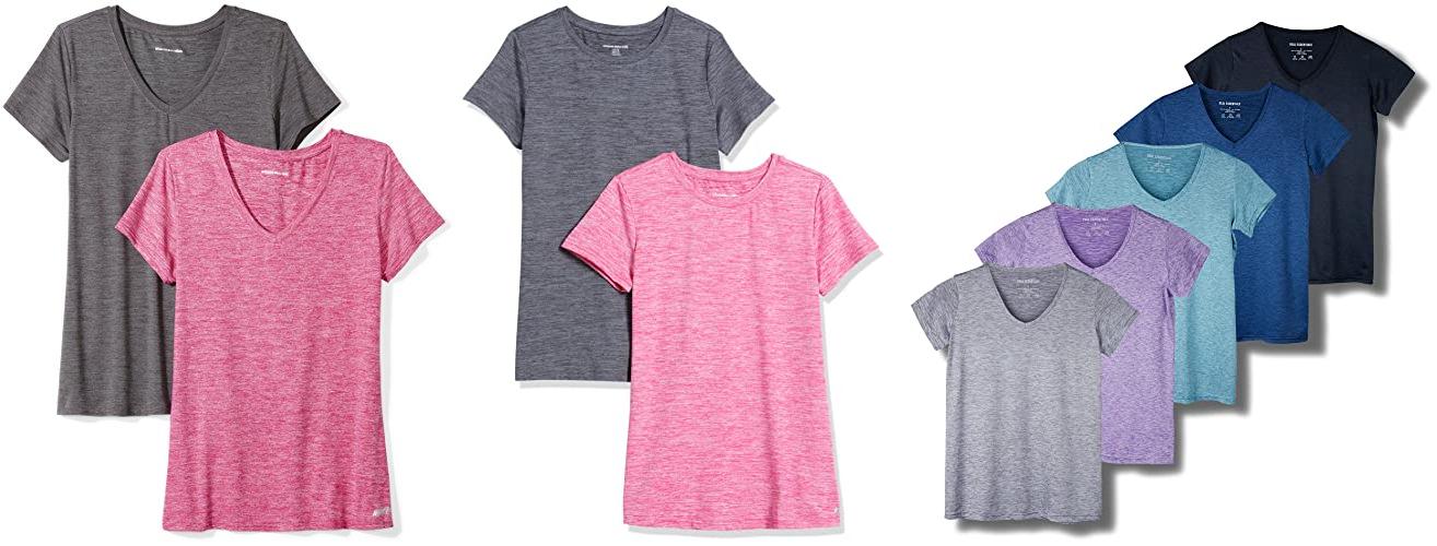1. Amazon Essentials Women’s Active Quick Dry Tech Stretch Short-Sleeve V-Neck T-Shirt (Available in Plus Size)