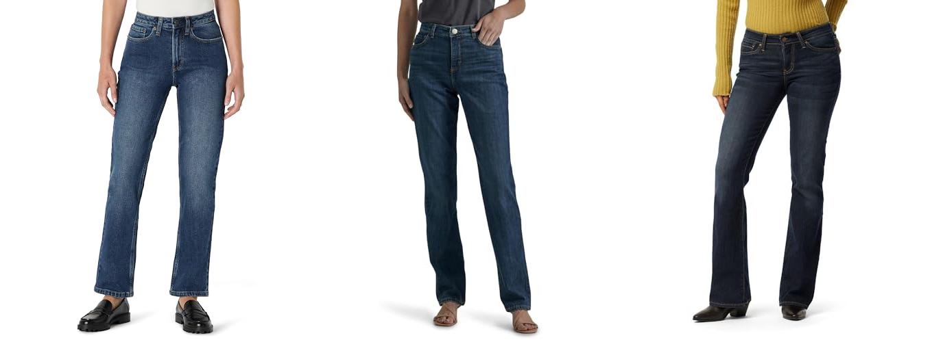 A: Mid-rise straight leg jeans are often considered very flattering. They create a balanced silhouette.