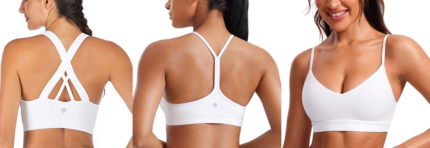 2. CRZ YOGA Butterluxe Womens Y Back Sports Bra – Padded Racerback Low Impact Spaghetti Thin Strap Workout Yoga Top White Small