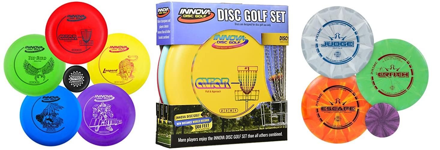 - This set includes popular Innova discs like the Aviar putter, Roc3 mid-range, Leopard fairway driver, TeeBird fairway driver, and even a Destroyer for more distance.