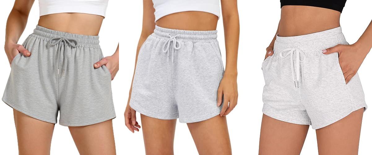 1. Women’s Sweat Shorts Sweatshorts Summer Lounge Cotton Drawstring Cute Fleece Shorts with Pockets Athletic Running Active Elastic Jersey French Terry Shorts 2025 Women Cloth Sweatpants Trendy Grey