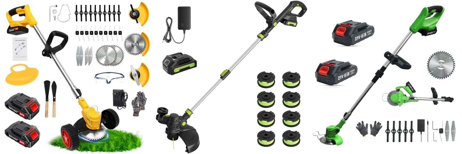 1. 24V Electric Weed Wacker Cordless Grass Trimmer with 2x2000mAh Batteries & Fast Charger