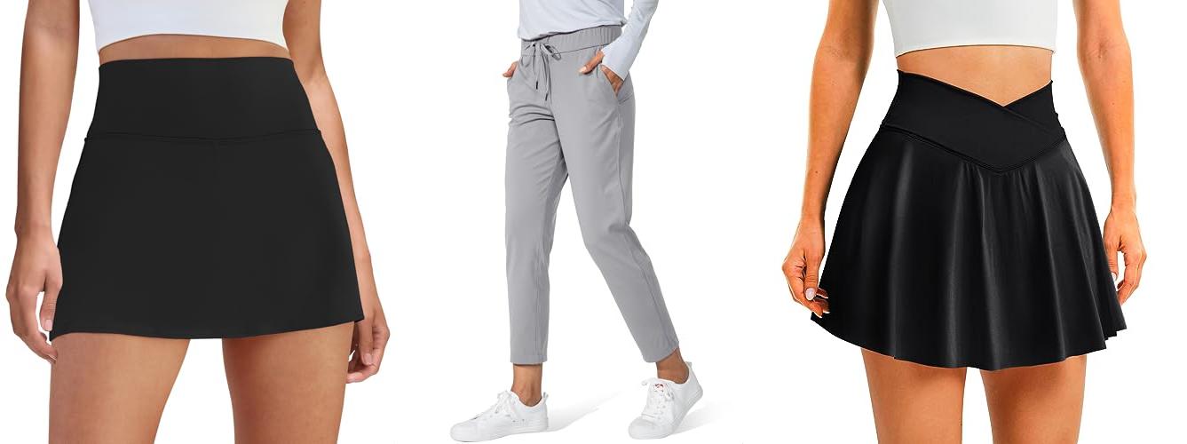 A: Popular options are skorts (skirts with shorts attached), shorts, and golf pants. Look for stretchy waistbands and comfortable lengths.